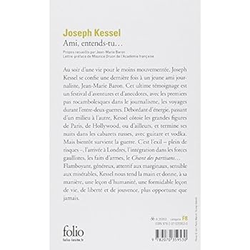 Kessel revient sur sa jeunesse 5 ans avant sa mort dans une série d??entretiens avec un jeune journaliste. Si tout ce qui est écrit est vrai, Kessel était vraiment un personnage unique, buvant à grands flots dans les caves fréquentées par les émigrés russes, pilote de chasse à la naissance de l??aviation (Kessel était aussi ami avec Mermoz par exemple), grand reporter, soldat avant 18 ans pendant la première guerre mondiale, résistant pendant la seconde, écrivain, proche de certains noms du grand banditisme à Paris et consommateur d??opium d??un côté, ami des grands administrateurs et hauts fonctionnaires Français de l??autre?Beaucoup de récits presque incroyables comme celui de son passage à Londres par l??Espagne pendant la seconde guerre mondiale, sa demande d??interdiction de jeu pour lui-même après son passage en Algérie, ses rencontres avec Jean Moulin, son séjour en Arabie? Un excellent livre.