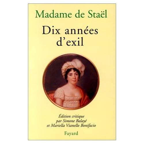 Assignée à résidence de Coppet par décision de Napoléon 1er, Mme de Staël fuit à travers un périple européen en voiture à cheval avec la crainte d'être arrêtée en cours de route par la police d'un empereur, qui à cette époque dominait largement l'Europe. En contrepartie elle était reçue par toutes les cours des pays traversés. On y apprend que les russes étaient des "esclavons"(slaves ?)
